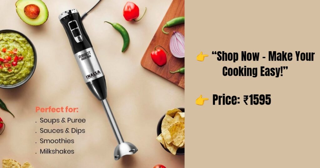 ⭐ Rating: 4.5 (800+ Reviews) 💬 Multi-purpose hand blender with a powerful motor — ideal for blending soups, smoothies, and whisking batters.